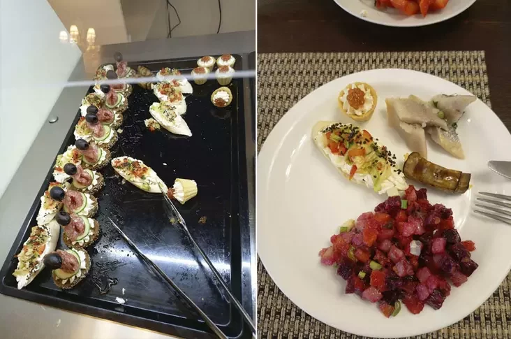 — Hałoŭnaje ŭražańnie — heta kuchnia. Charčavańnie trochrazovaje pa pryncypie «šviedski stoł», jašče byŭ padviačorak ź johurtami i sadavinoj. Ščyra skažu: hety šviedski stoł nie sastupaŭ dobrym restaranam. Zaŭsiody byŭ vybar syroŭ, u tym liku ź ćvillu, midyi, kalmary i košyčki z krevietkami. Na abied — ryba i miasa (jałavičyna, śvinina, kuracina, piečań). Bahaćcie sadaviny — ad zvykłych apielsinaŭ da ananasaŭ, churmy i vinahradu. Dobry vybar smačnaj vypiečki.