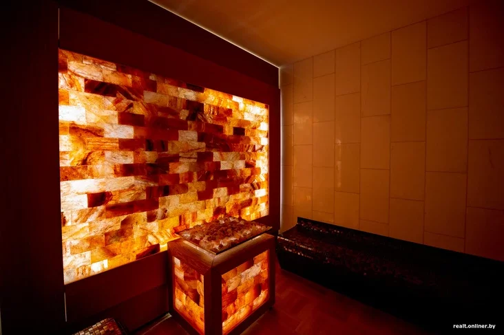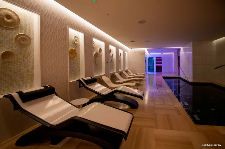 Ahulnaja płošča spa — 3000 kv. m. Tut raźmiaścilisia 8 pracedurnych kabinietaŭ, saŭna, chamam, salany pakoj, basiejn, džakuzi i ledziany fantan.