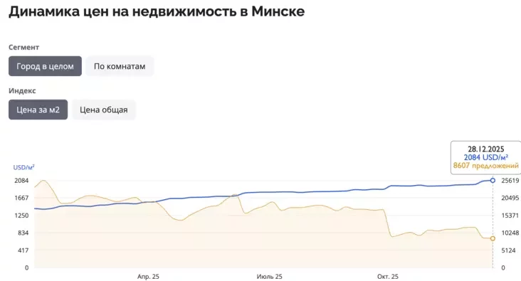 Za 2025 hod cana prapanovy kvadrata ŭ Minsku vyrasła na 47%, z $1416 da $2084.