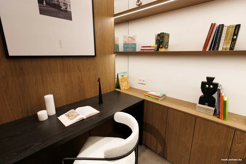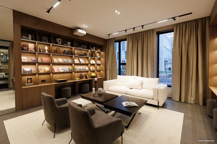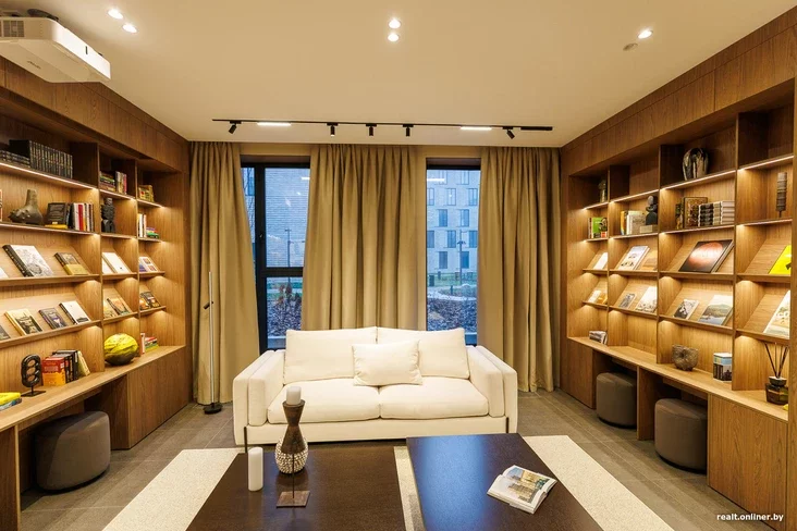 — Hetu prastoru my prajektavali jak «treciaje miesca» — niešta pamiž pracaj i domam, — tłumačyć kiraŭnik adździeła prodažaŭ kvartała Depo Alaksandra Chacianovič. — Tut žychary doma zmohuć sustrakać haściej, pravodzić pracoŭnyja zvanki, navat pryznačać niejkija sustrečy. Nu i, viadoma, čytać knihi. My razam z prajektam Arzamas pastaralisia sabrać nievierahodnuju kalekcyju, kab kožny zmoh znajści niešta dla siabie.