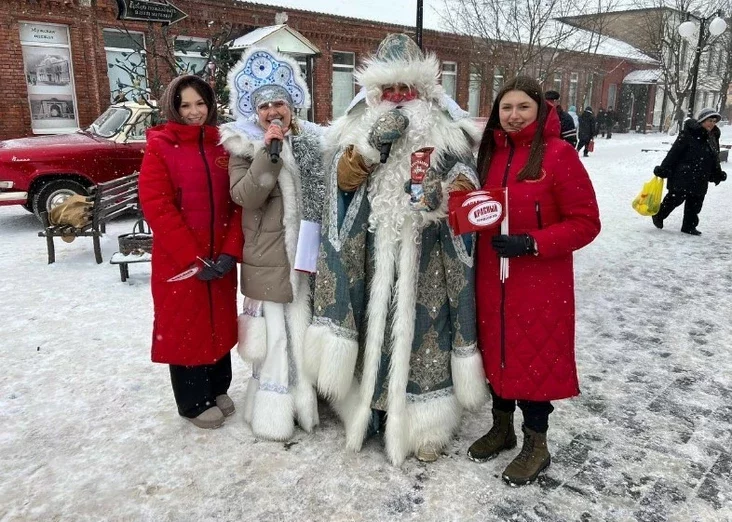 Śviatočnaja akcyja prajšła kala viadomaj art-instalacyi fabryki — ažurnaha jabłynievaha dreva. Dzied Maroz i Śniahurka vinšavali minakoŭ z nadychodziačym Novym hodam i ŭručali samym śmiełym sałodkija padarunki.