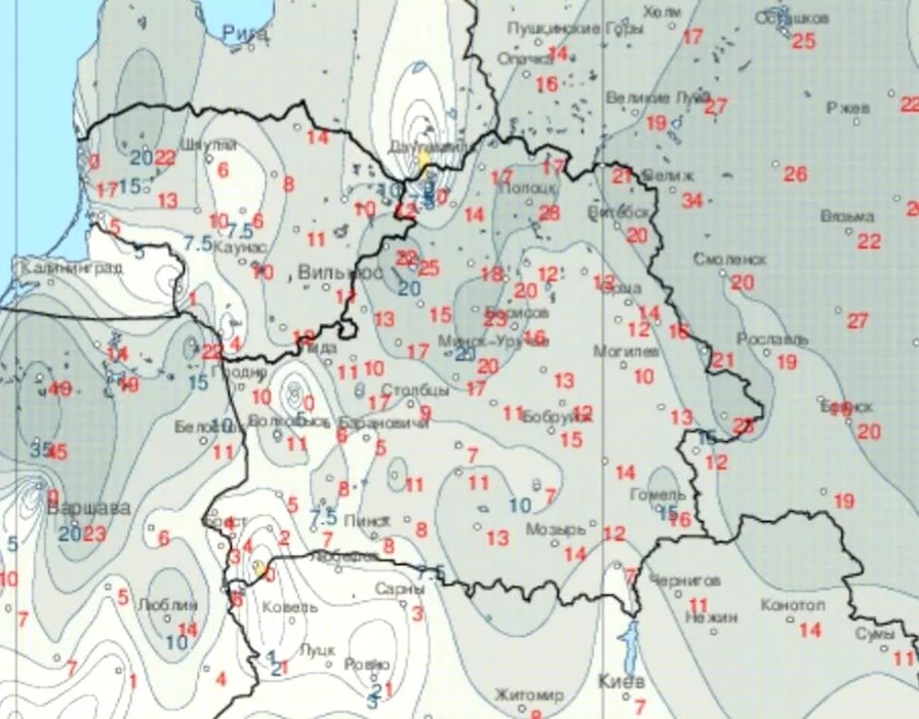 Karta śniehavoha pokryva ŭ Biełarusi na 4 studzienia.