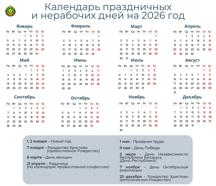 Zaŭtra — skaročany pracoŭny dzień. A kali buduć nastupnyja vialikija vychodnyja?