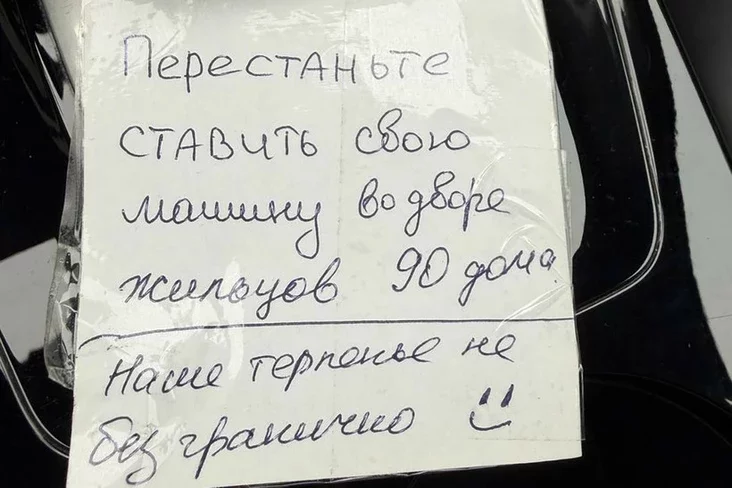 Učora, 7 studzienia, vyjšaŭšy da svajho aŭtamabila, Hanna znajšła ŭ dźviarnoj ručcy zapisku z adkrytaj pahrozaj: «Nie staŭcie svaju mašynu ŭ čužym dvary, inakš budziecie jeździć na šynamantaž kožny dzień». Unizie podpis — «žychary doma №90».