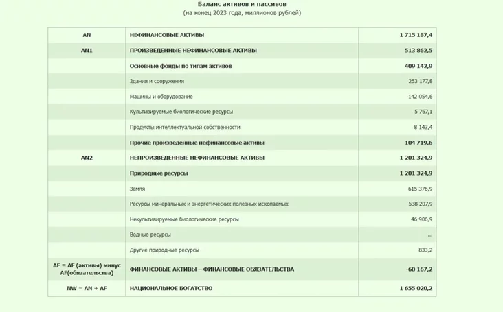 U vyniku padlikaŭ było ŭstanoŭlena, što na kaniec 2023 hoda nacyjanalnaje bahaćcie Biełarusi skłała 1655 młrd rubloŭ (abo 180,8 tysiač rubloŭ na dušu nasielnictva).