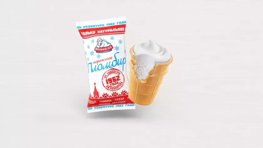 - kobrynskaje marožanaje-płambir z vodaram vanili ŭ vafielnym kubačku «1962» 12%-j tłustaści;