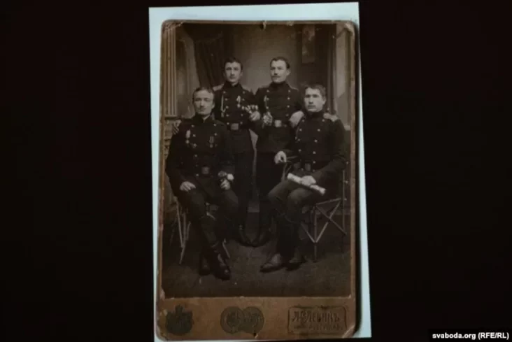 Ale jašče praź piać hadoŭ Viktar u siamiejnym archivie ŭbačyŭ fotazdymak, datavany 1911 hodam. Na im — čaćviora vajskoŭcaŭ u akuratnaj formie i načyščanych botach. Siarod ich — pradzied Amialjan Marcinovič.