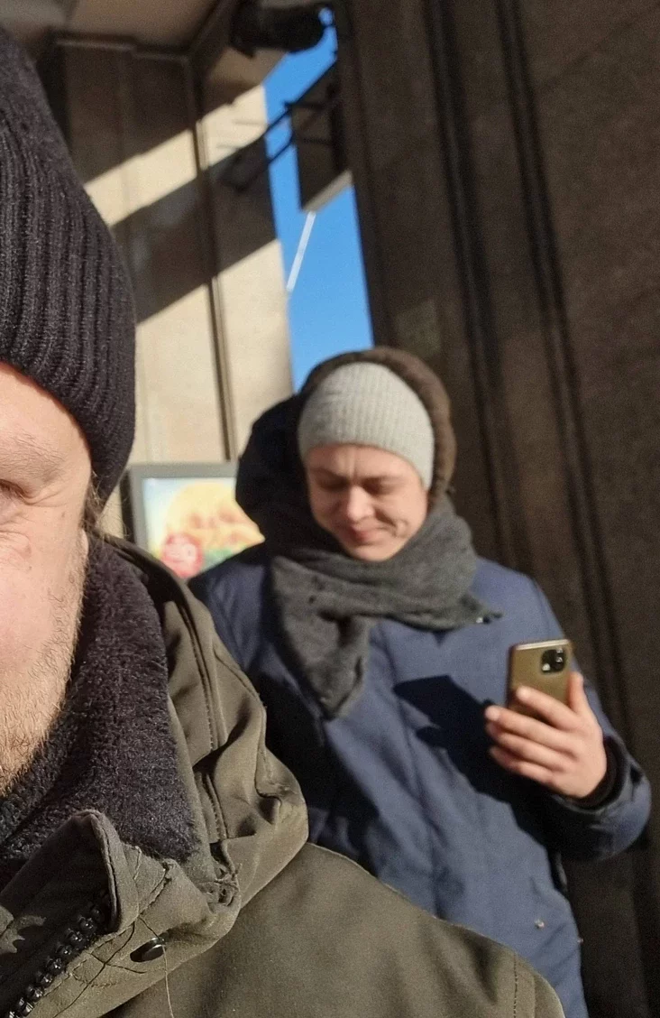 «Padyšoŭ tak, kab jana traplała razam sa mnoj u sełfi-kadr i bačyła, što ja zdymaju. Jana rezka raźviarnułasia i schavała tvar. Paśla hetaha adyšła, stała značna dalej ad nas, ale praciahnuła kiravać kamieru ŭ bok novych biełarusaŭ, jakija padychodzili pad dźviery ź dzietkami».