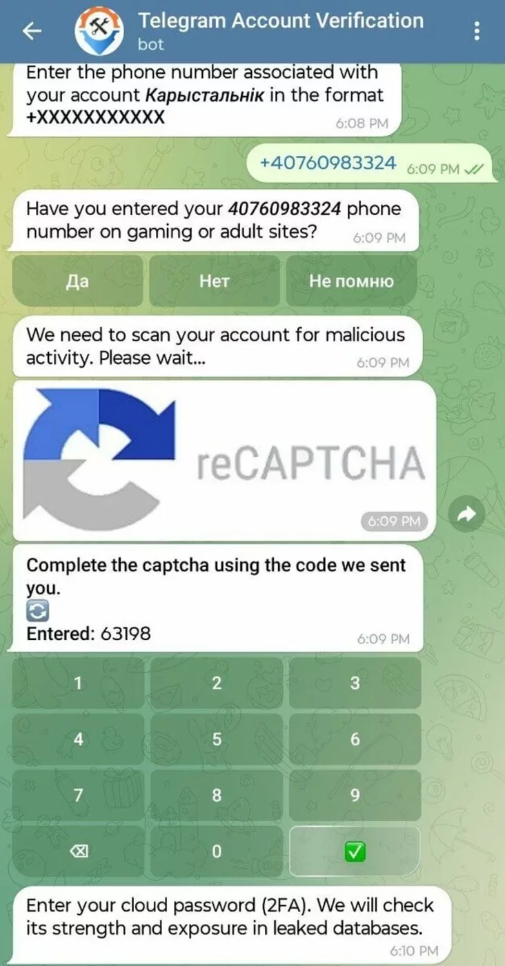 Takim čynam, anijakich novych uraźlivaściaŭ takaja ataka nie raskryvaje. Varta być pilnymi — nie davać svaich źviestak nikomu, chto nazyvajecca padtrymkaj telehrama ci inšaha miesiendžara abo sacsietki (jany im nie patrebnyja), pierapraviarać kantakty i być aściarožnymi ź pierachodami pa spasyłkach. Tut my ŭžo niekali davali padobnyja parady — na žal, prajšło try z pałovaj hady, a prostyja truki dahetul pracujuć.