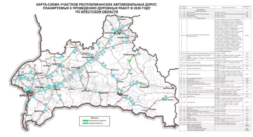 Mintrans apublikavaŭ karty-schiemy ŭčastkaŭ aŭtadaroh, dzie ŭ 2026 hodzie zapłanavanyja darožnyja raboty. Na ich paznačanyja miescy novaha budaŭnictva, rekanstrukcyi, kapitalnaha i biahučaha ramontu.