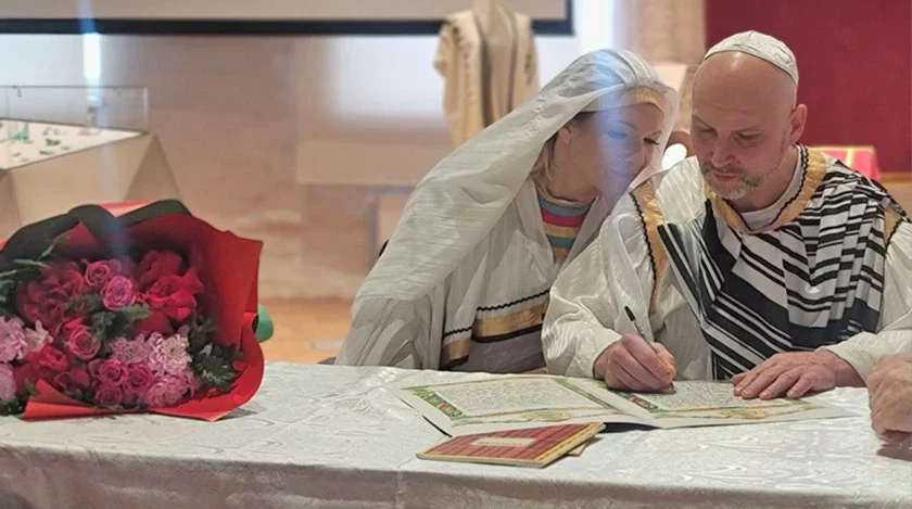 U Vałožynie praviali staražytny abrad padpisańnia šlubnaj damovy — ktuby. Jaho ŭdzielnikami stała para ź Minska Ejal i Abihal, paviedamlaje BiełTA.