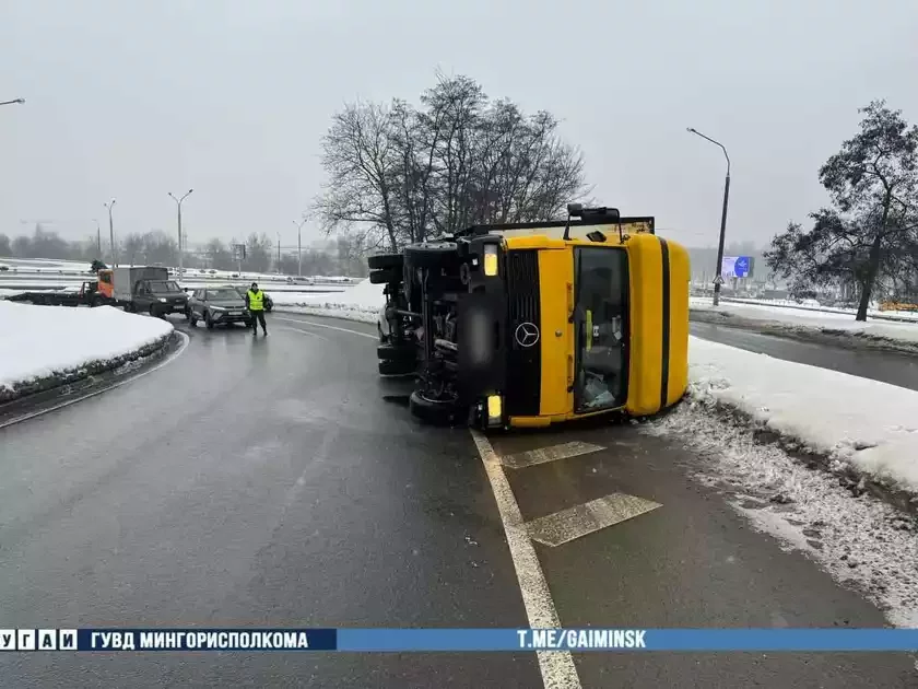 U Minsku na Partyzanskim praśpiekcie adbyłosia niezvyčajnaje darožna-transpartnaje zdareńnie — hruzavik Mercedes pierakuliŭsia bieź nijakaha ŭdziełu inšych aŭtamabilaŭ.