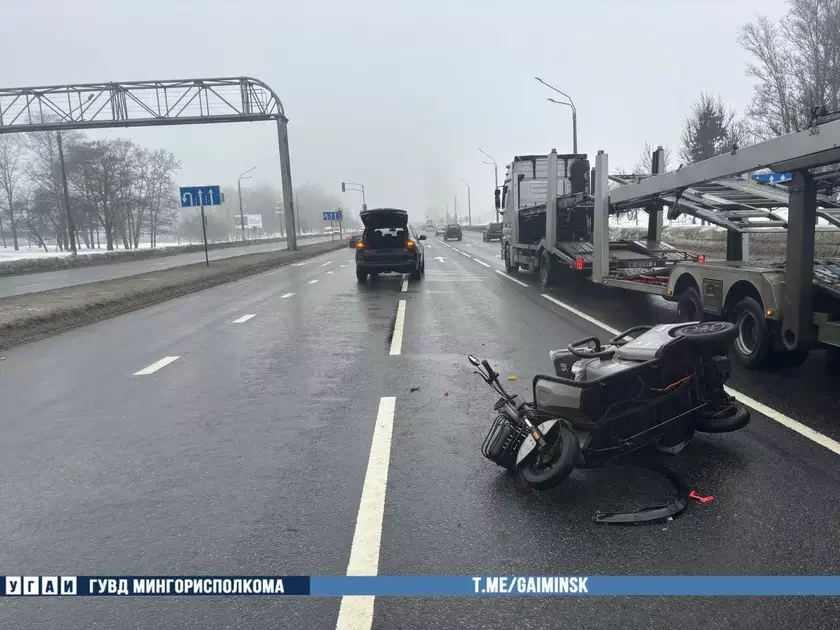 77‑hadovy kiroŭca elektraskutara pry pierastrajeńni nie pierakanaŭsia ŭ biaśpiecy svajho manieŭru, jaho źbiŭ aŭtamabil BMW.
