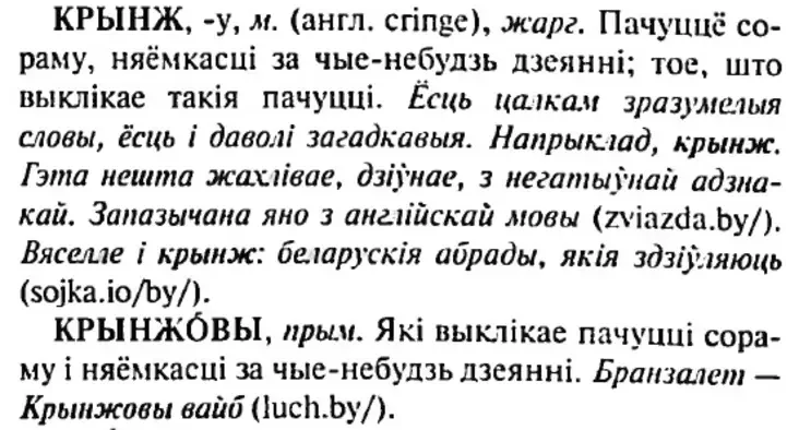 KRYNŽOVY, prym. Jaki vyklikaje pačućci soramu i niajomkaści za čyje-niebudź dziejańni.