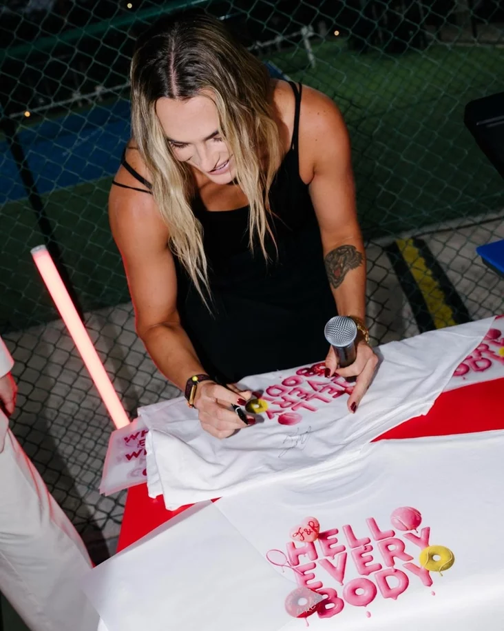 A jašče jość mahčymaść vyjhrać pryzy ad pieršaj rakietki śvietu. Naprykład, futbołku ź lehiendarnaj frazaj «Hello everybody!» i aŭtohrafam Sabalenki.