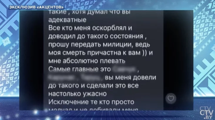 «Heta ŭsio z-za vas, vy mianie dazvolili davieści da takoha stanu, što ja pakinu svoj śviet», — pisaŭ chłopiec.