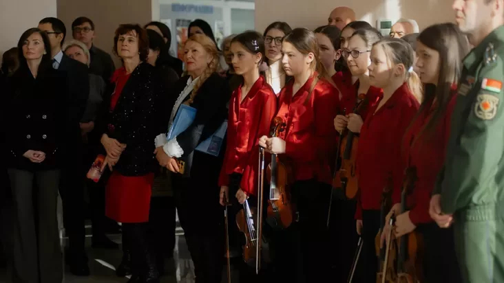 Na ŭračystaje adkryćcio pryviali skrypičny ansambl himnazii, udzielnikaŭ prajekta «Faktar baj», kłub Ruskaha tavarystva «Aryjon». Prysutničali taksama vice-konsuł Hienieralnaha konsulstva RF u Breście Raman Citoŭ i kiraŭnica adździaleńnia Rassupracoŭnictva ŭ Breście, vice-konsuł Safija Piakšava.