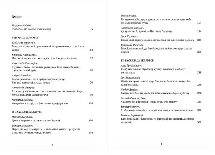 «Svaboda jak bijahrafija» — vasiamnaccać hutarak ź intelektuałami, pravaabaroncami, žurnalistami i tvorcami, jakija stali śviedkami i ŭdzielnikami pieramien u Biełarusi apošniaha paŭstahodździa. Ich słovy adkryvajuć hłybiniu asabistaha dośviedu i pakazvajuć farmavańnie novaj hramadzianskaj śviadomaści. «Kniha stvorana jak cełasny apovied, dzie indyvidualnyja historyi składajucca ŭ ahulny partret pakaleńnia», — havorycca ŭ anatacyi da vydańnia.