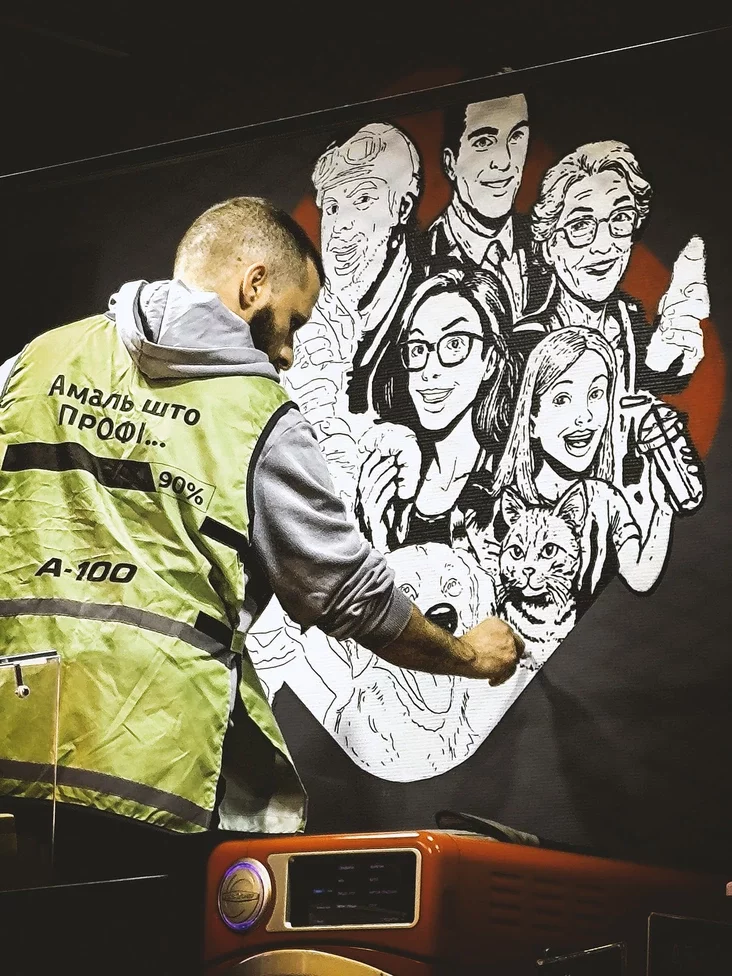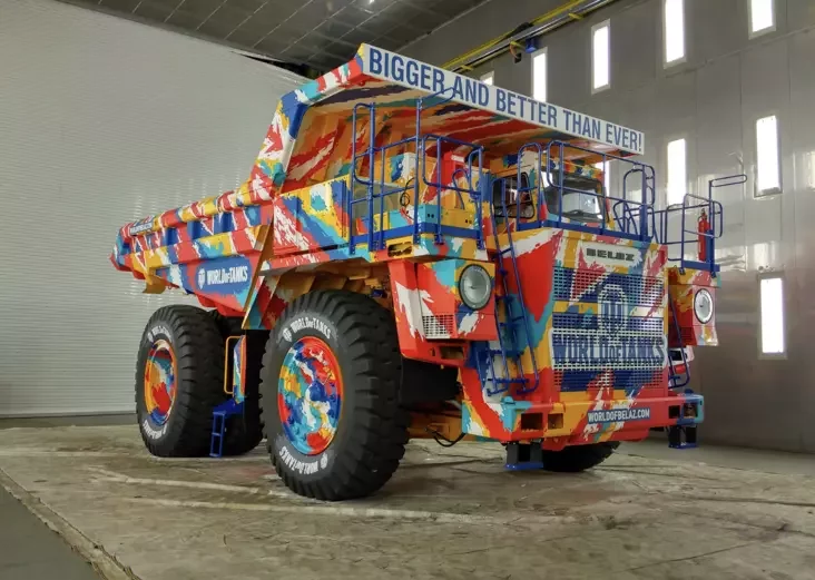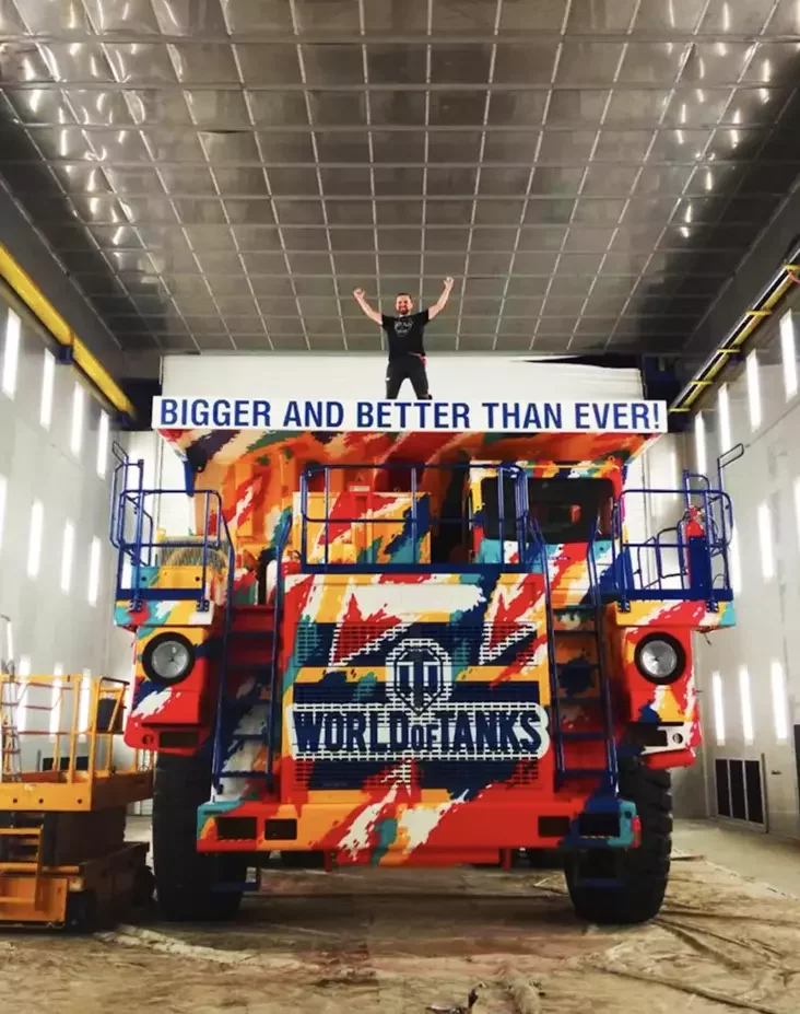 U 2019 hodzie mastak udzielničaŭ u niezvyčajnym prajekcie: razmalavaŭ karjerny samazvał BiełAZ-75585 vahoj kala 90 ton. Prajekt zrabili razam z Wargaming: vielizarnuju mašynu pakryli jarkim hieamietryčnym uzoram, jaki nahadvaje kamuflaž z kampjutarnych hulniaŭ.