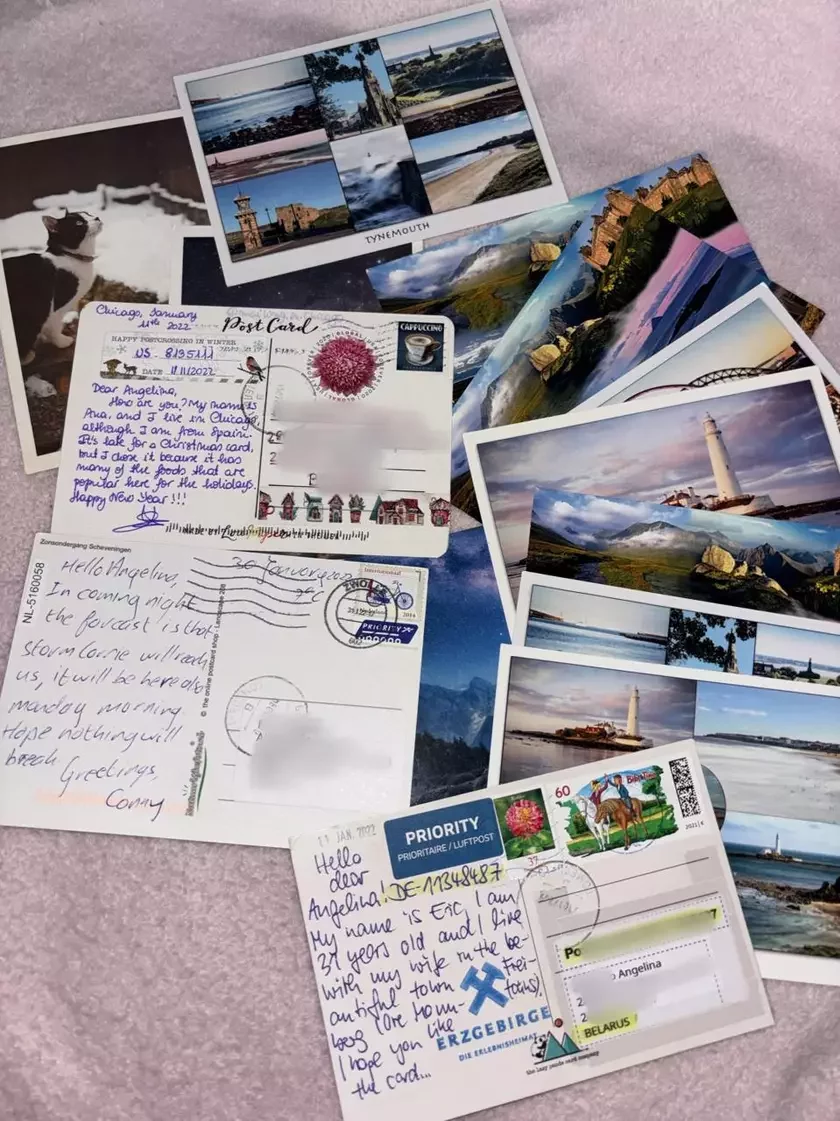 «U 2021 hodzie ja navažyłasia adpravić svaje pieršyja paštoŭki: na płatformie mnie vypali niekalki adrasoŭ, i ja pajšła na poštu pa kartki. Doma ich zapoŭniła — starałasia kožnamu adrasatu padabrać paštoŭku ŭ zaležnaści ad jaho intaresaŭ i zachapleńniaŭ. U pasłańni krychu raskazała pra siabie i napisała ciopłyja pažadańni ludziam, jakim pryznačalisia hetyja paštoŭki, i adpraviła», — uzhadvaje hamialčanka.