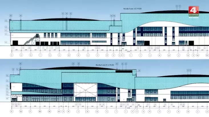 Ladovuju arenu i akvapark budzie złučać ahulny ŭvachod — vializny vitražny atryum.