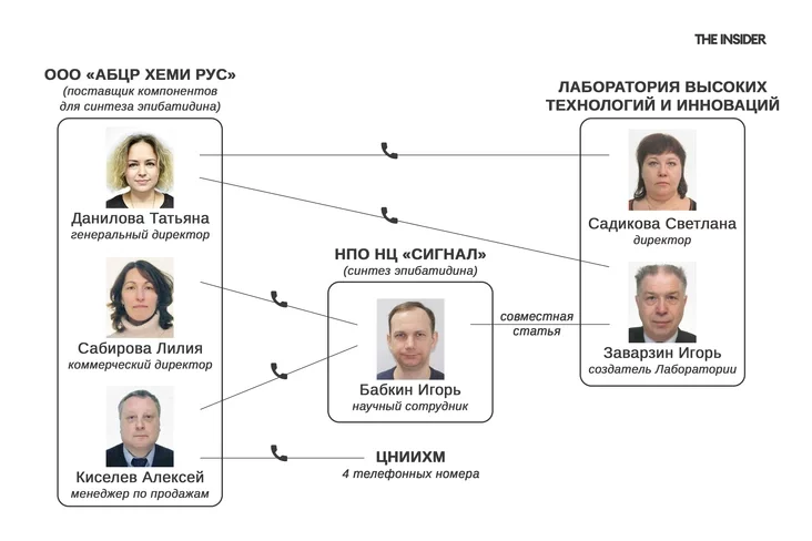 Analiz telefonnych złučeńniaŭ supracoŭnikaŭ hetych čatyroch kampanij vyjaviŭ važnuju detal: mieniedžary adnoj ź ich — «ABCR Chiemi Rus» — rehularna kantaktavali z supracoŭnikami NC «Sihnał», a taksama z pradstaŭnikami inšych ustanoŭ, źviazanych z raspracoŭkaj chimičnaj zbroi.