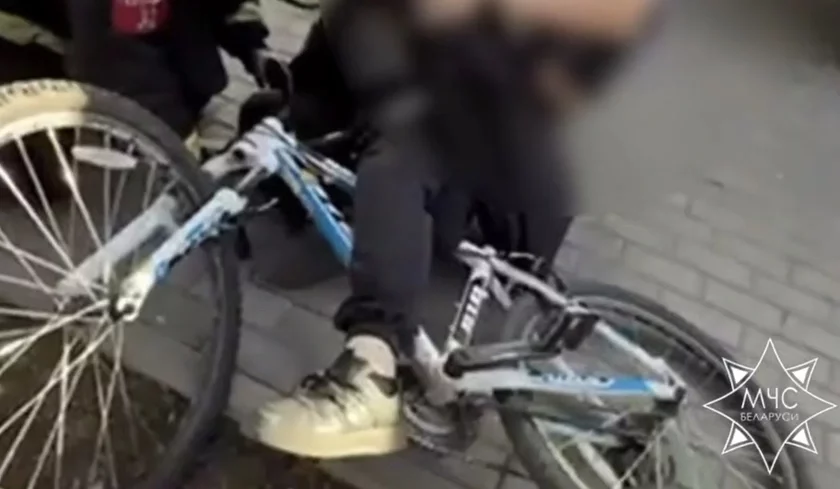 Chłopčyk kataŭsia na rovary, straciŭ raŭnavahu i ŭpaŭ, ručka rovara ŭpiłasia ŭ ściahno dziciaci.