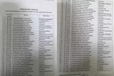 U Rasii apublikavany śpis bajcoŭ, što «prapali bieź viestak» pad Chišamam u Siryi. U im 74 proźviščy4545