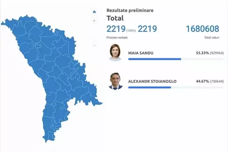 U Małdovie zaviaršyli padlik hałasoŭ: u Sandu 55,33%55