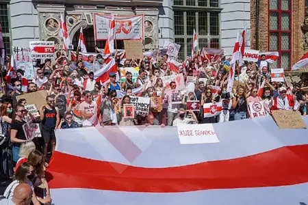 Дзясяткі людзей выйшлі на акцыі салідарнасці з беларусамі ў Беластоку і Гданьску ФОТА 11