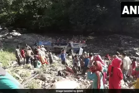 У індыйскіх Гімалаях перапоўнены аўтобус зваліўся ў цясніну