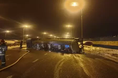 На маладзечанскай трасе перакулілася аўтацыстэрна са смалой