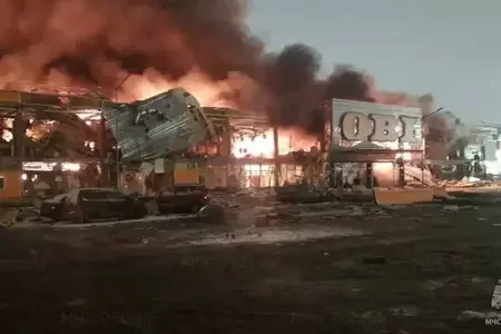 Пад Масквой загарэўся гандлёвы комплекс «Мега Хімкі». Плошча пажару складае 18 тысяч квадратных метраў