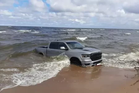 У Латвіі беларускі ўседарожнік заехаў у мора9