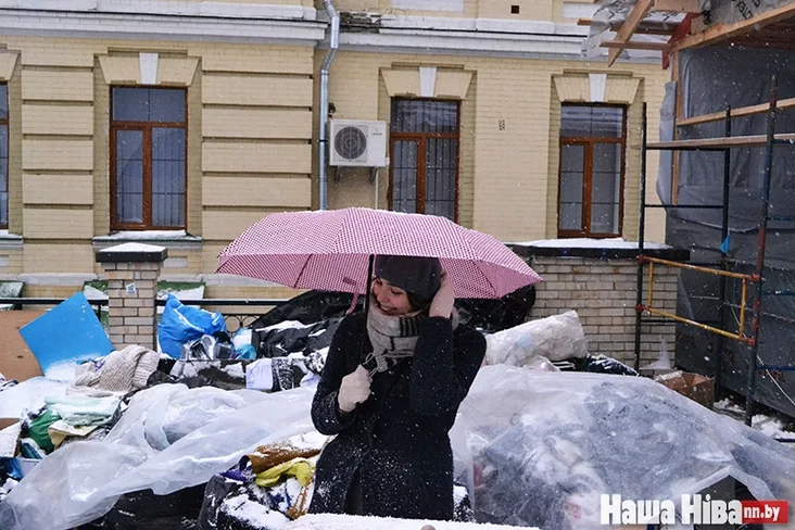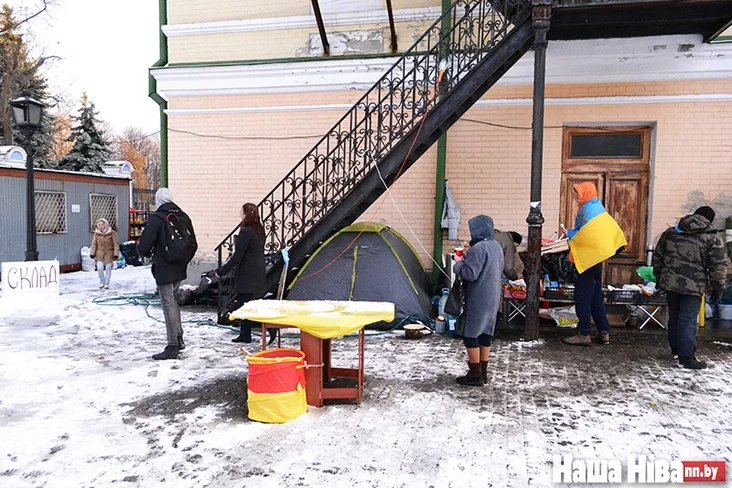 На территорию монастыря переходили протестующие, оттесненные с Михайловской площади, сюда они переносили бочки с дровами и теплые вещи.