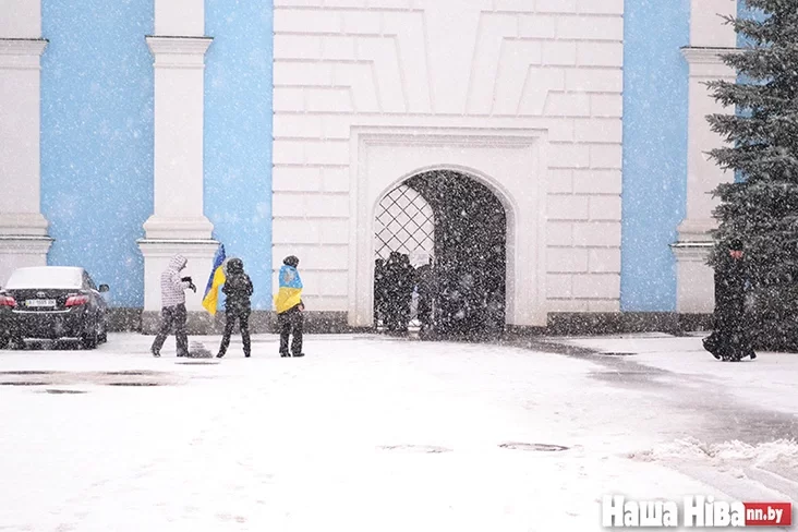 Пункта приема вещей для протестующих расположен на территории Михайловского монастыря.