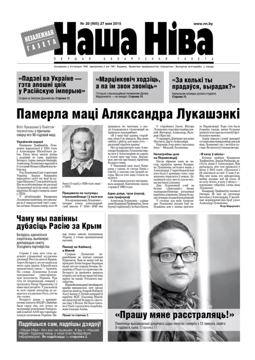 Помните, что Наша Нива/NN.BY — независимая газета. Она существует на пожертвования и средства от продаж. Поэтому она отражает интересы белорусского общества, а не властей. Наша Нива была основана в 1906 г., возрождена в 1991 г. Пожертвовать деньги для НН можно в любом банке. Спасибо за поддержку!