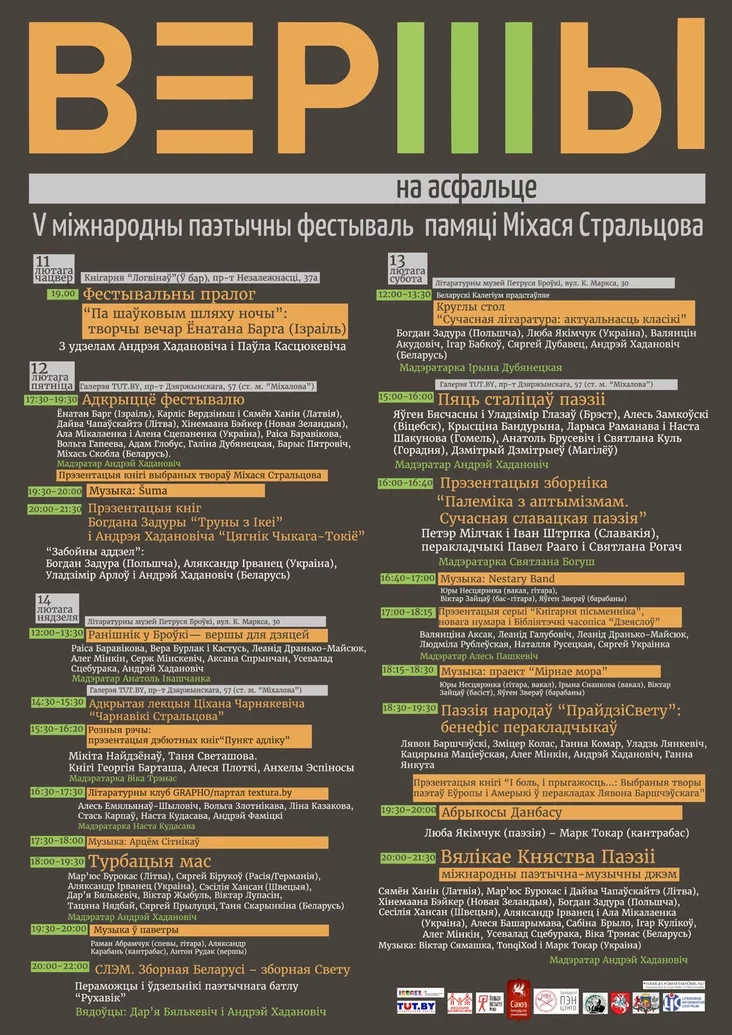 11-14 лютага ў Мінску пройдзе пяты Міжнародны паэтычны фестываль «Вершы на асфальце» памяці Міхася Стральцова.