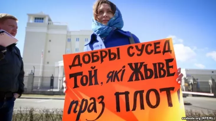 Возле здания посольства России в Минске 2 апреля прошел пикет против российского шовинизма и империализма. Несанкционированная властями акция была приурочена ко Дню единения народов Беларуси и России.