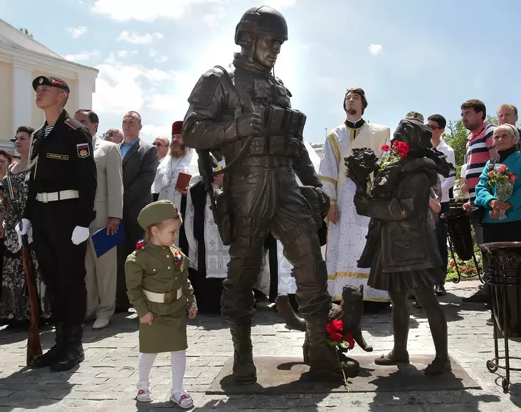 По словам присутствовавшего на открытии полномочного представителя президента РФ в Крымском федеральном округе Олега Белавенцева, памятник «олицетворяет силу, спокойствие, уверенность и вежливость нашего российского солдата».