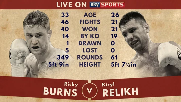 Сегодня в шотландском Глазго состоится боксерский бой за пояс WBO (World Boxing Assoсiation) между белорусом Кириллом Релихом и чемпионом мира Рики Бернсом (весовая категория до 63,5 кг).