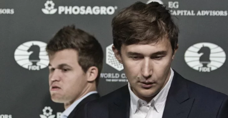 Россиянин Сергей Карякин и норвежец Магнус Карлсен согласились на ничью на 34-м ходу. Встреча продлилась 3 часа 20 минут.