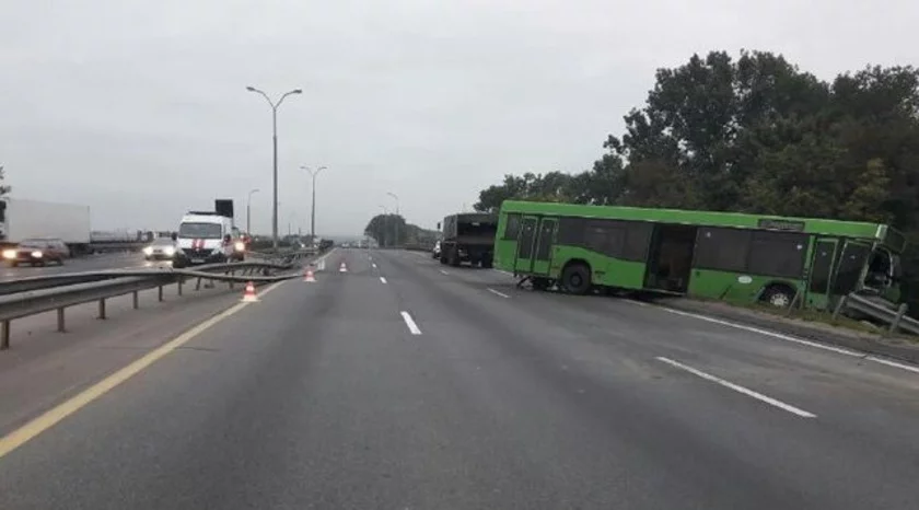 «Примерно в 5 часов утра фура Volvo, двигавшаяся по второй полосе внешнего кольца МКАД со стороны ул. Кижеватова в направлении ул. Бабушкина, совершила столкновение с автобусом, двигавшимся по первой полосе. В результате столкновения автобус наехал на металлическое ограждение, разделяющее встречные потоки, выехал на внутреннее кольцо, где наехал на боковое ограждение», - рассказала Виктория Царук.
