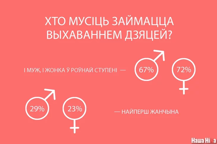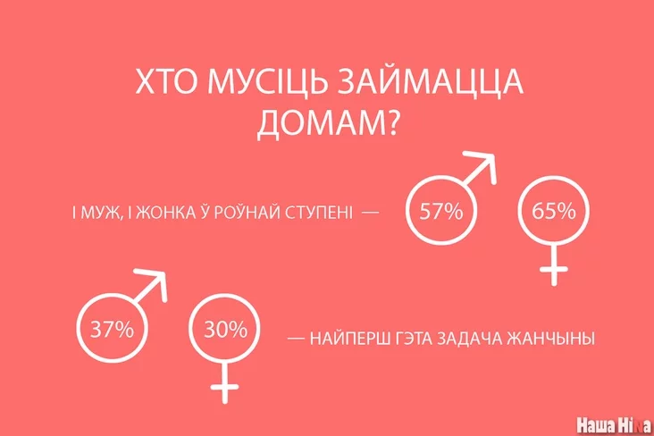 Теперь научный сотрудник института Алеся Соловей озвучила результаты мониторинга. Похоже, что белорусы все же отчасти традиционно относятся к «женским» и «мужским» обязанностям, хотя значительная часть опрошенных стремится к равенству во всем.