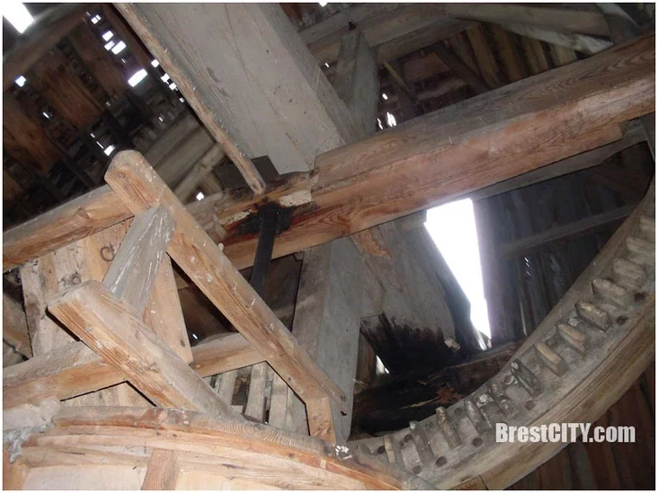 Позже выяснилось, что мельницу планировал перевезти в Дрогичин местный коллекционер. Нужно отдать должное, что перед предполагаемой транспортировкой, предварительно механизмы были закреплены тросами и были поставлены упоры.