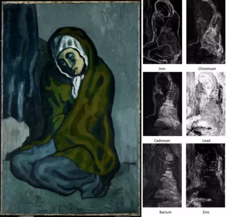 Группа ученых из США и Канады исследовала картину Пабло Пикассо «La Miséreuse accroupie» («Нищенка, сидящая на корточках»). Ученые установили, что под верхним масляным слоем находится пейзаж другого художника, который Пабло Пикассо использовал как основу для новой картины. О своей работе ученые рассказали на ежегодной конференции Американской ассоциации содействия развитию науки, которая проходит 15—19 февраля в США, сообщает Идикатор.