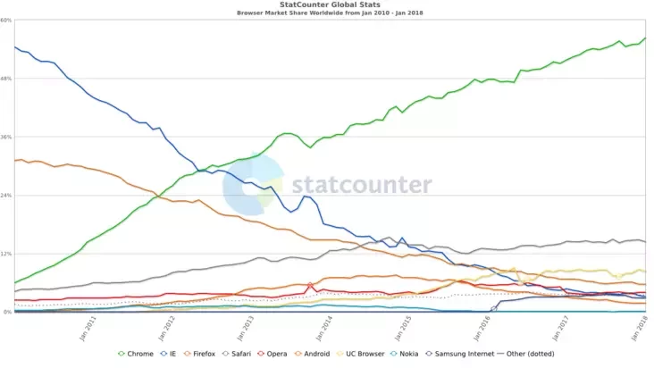 С момента появления в 2008 году браузер компании Google завоевывал рынок гигантскими темпами. И только в 2017 году было зафиксировано незначительное падение. В чем же успех этого браузера?
