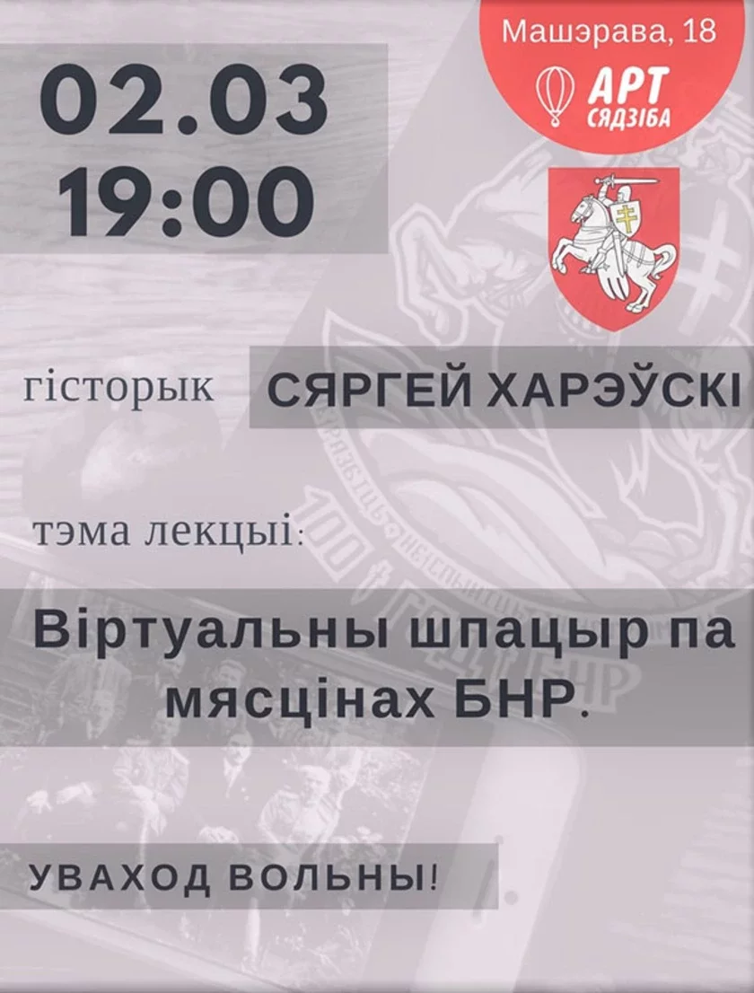 Запрашае Арт Сядзіба (Машэрава, 18). Пачатак а 19-й. Кіруе — Сяргей Харэўскі.