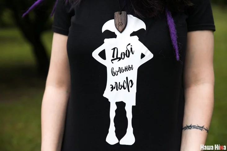 Гэтую цішотку зрабілі мае сябры Ірына Арахоўская і яе муж Макс Пякарскі. Мы з Ірай шмат гадоў сябруем і наша агульная кропка перасячэння — кнігі пра Гары Потара. Вобраз Добі — пра рабства і бесчалавечнае абыходжанне. На цішотцы напісана, што Добі — вольны эльф, і гэта для мяне дадатковы напамін, што ўсе мы створаныя свабоднымі, да свабоды трэба імкнуцца.