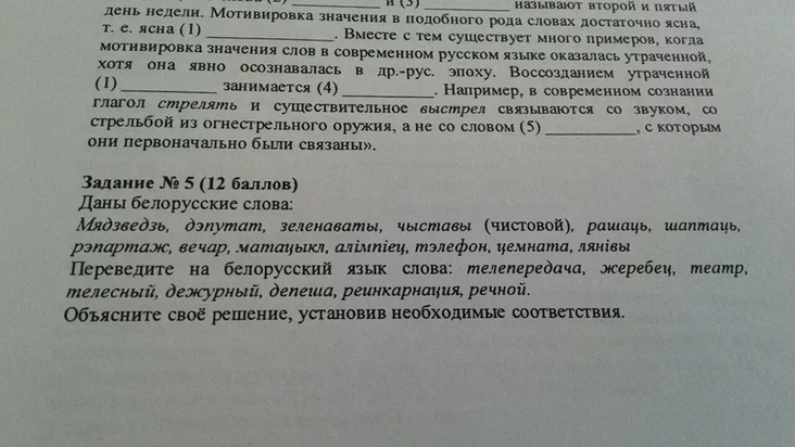 В задании для десятиклассников приведены слова белорусского языка: «мядзведзь», «дэпутат», «зеленаваты» …